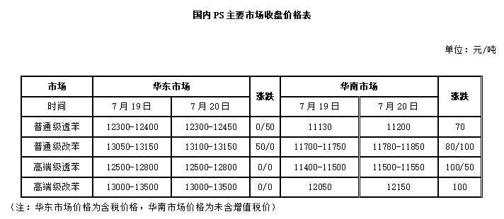 20日,PS市场稳中上行,交投气氛一般。成本支撑较强,加之少数PS企业上调出厂报盘,市场稳中趋坚。部分地区因昨日适度补仓之后,加之临近周末,今日整体交投略有转淡。场内各方保持低库存运作,对长线市场仍持谨慎态度。华东市场普通透苯报12300-12450元/吨,改苯报13100-13150元/吨。