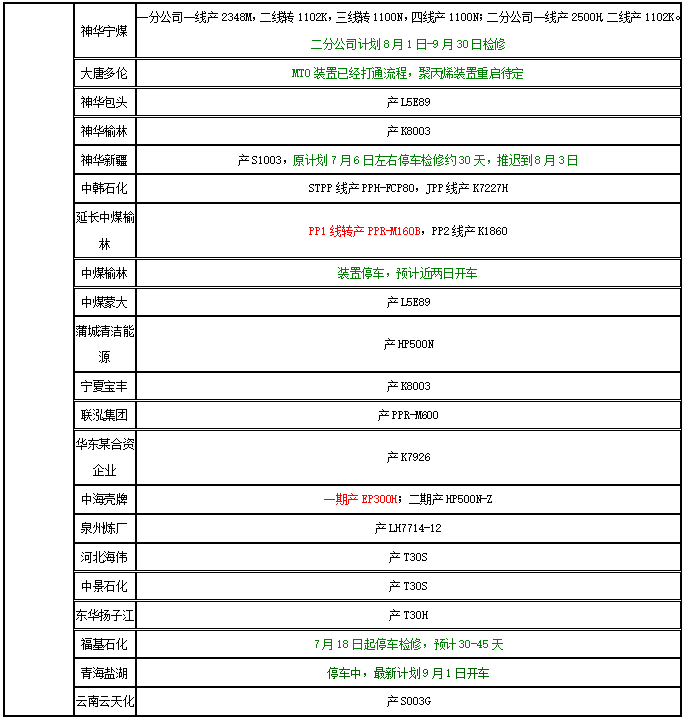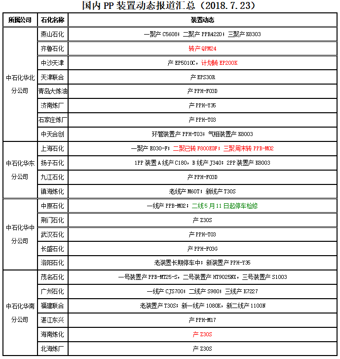 【国内PP装置动态报道汇总(2018.7.23)】