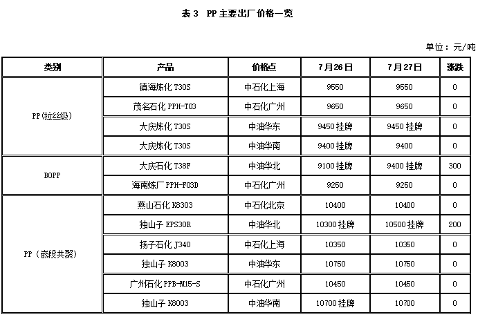 1 今日国内PP代表市场报价参考