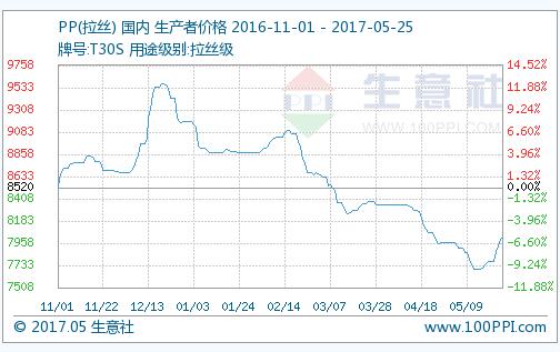装置动态:抚顺石化PP老装置(9万吨/年)产Z30S;新装置(30万吨/年)产L5E89。抚顺石化公司8个生产厂检修时间,从2017年6月1日至7月15日,炼油和化工都检修。扬子石化1PP装置A线5月12日起停车检修,预计停车40天左右;B线5月14日起停车检修,预计停车40天左右;2PP装置5月21日期停车检修,初步预计40天。