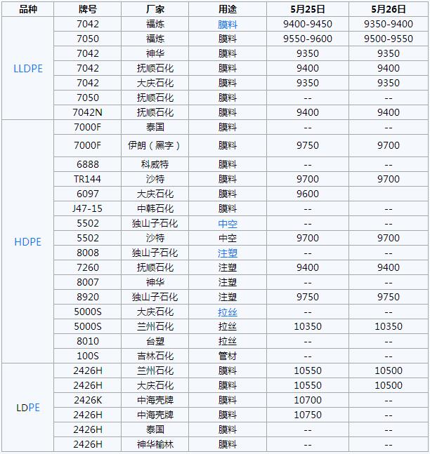 【日评:5月26日PE价格部分松动 弱势窄调】