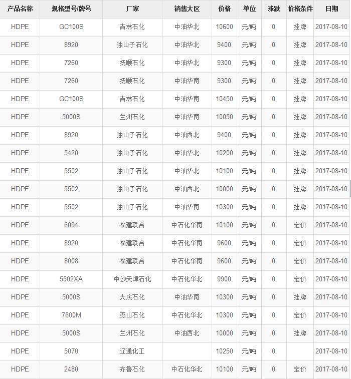 【日评:今日HDPE国内出厂价】